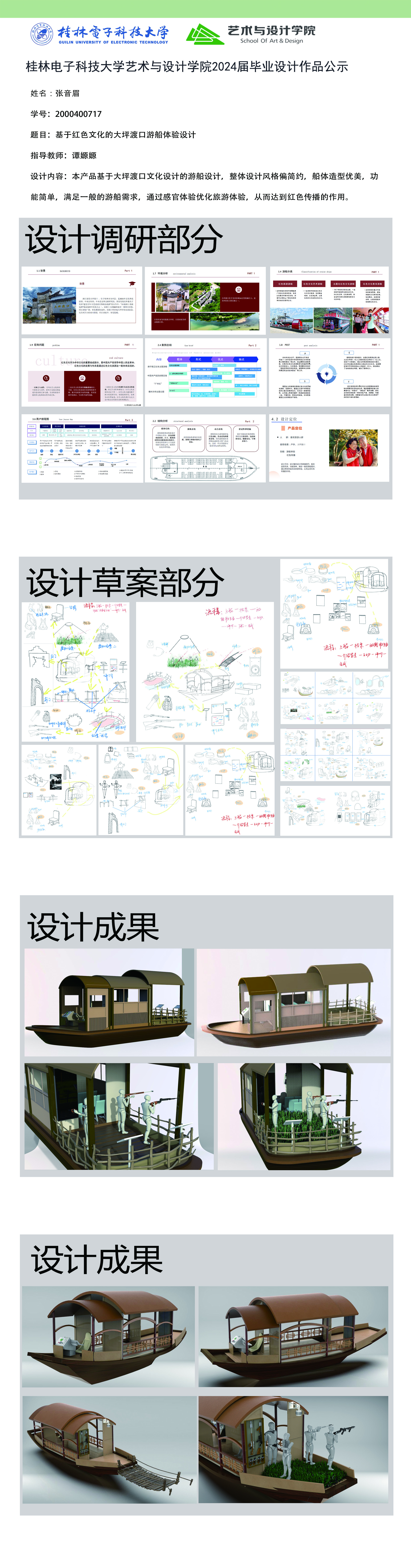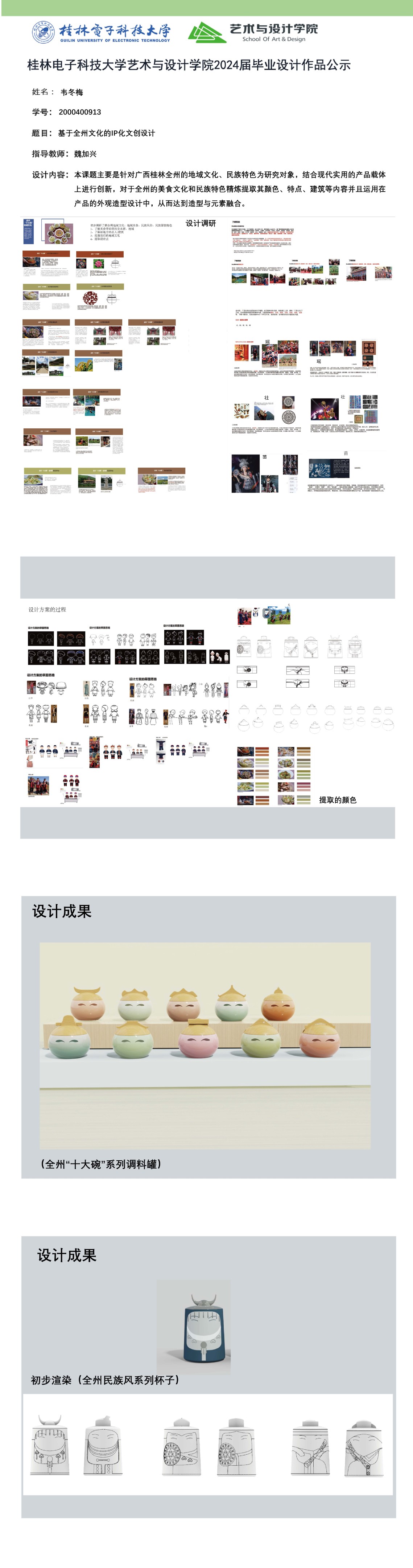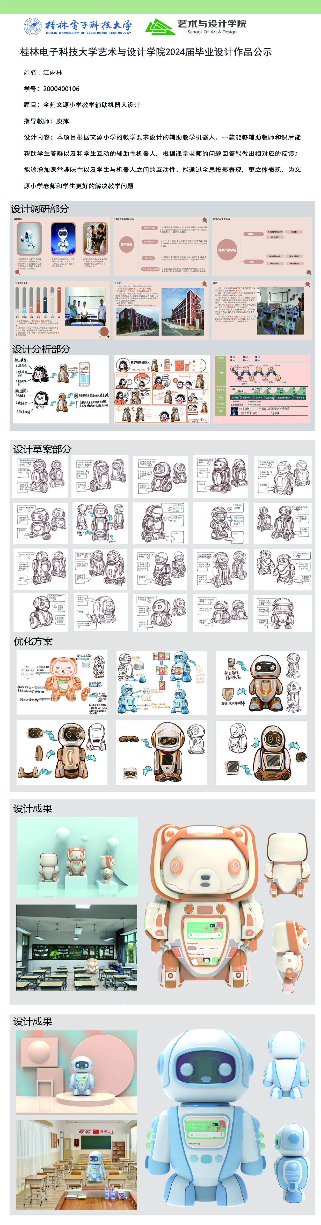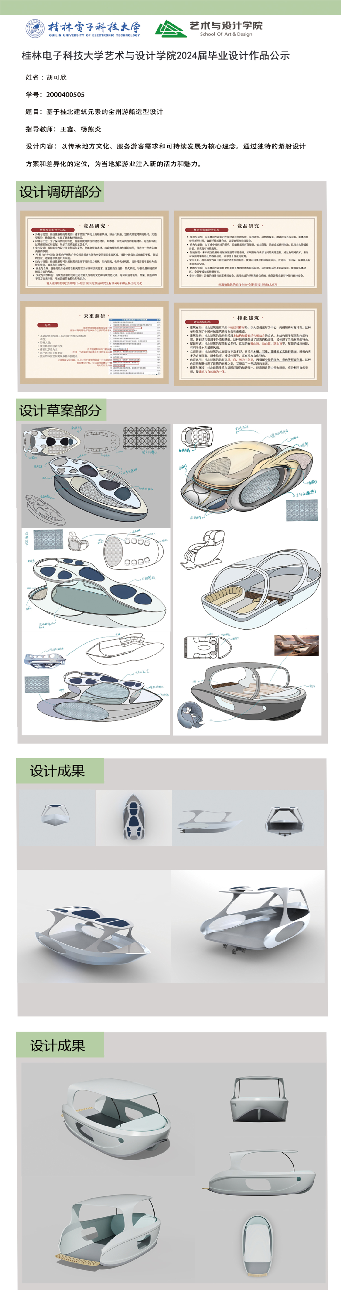 根据毕业设计管理文件规定,现将2024届产品设计专业毕业设计作品进行公示。对所公示的作品如有疑议,请实名举证。公示期为三天(2024.04.25-2024.04.27)。作品公示期间的意见反馈邮箱:360758122@qq.com,联系电话:18978660487。
