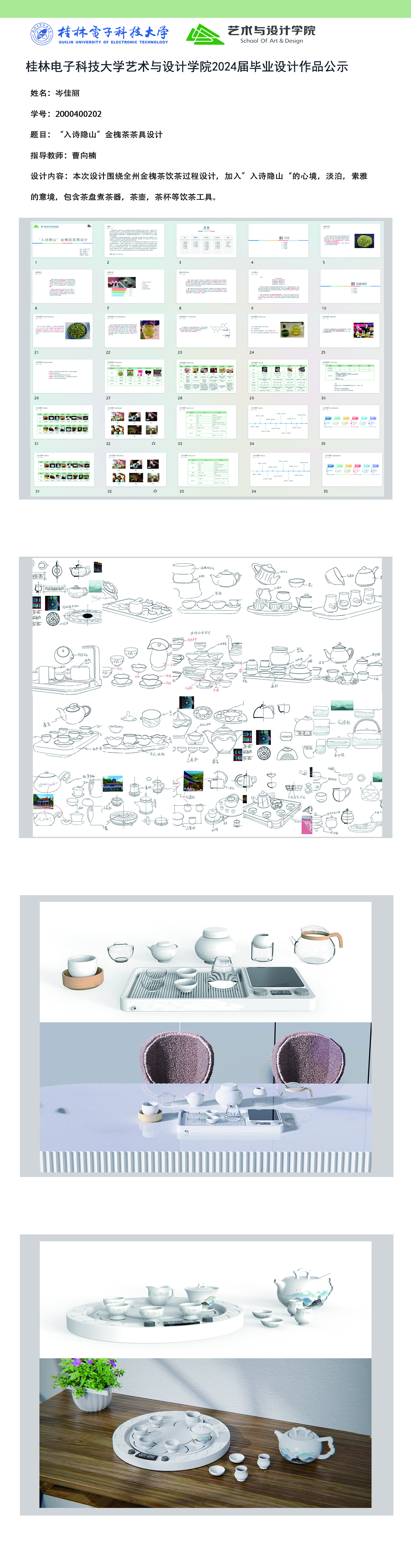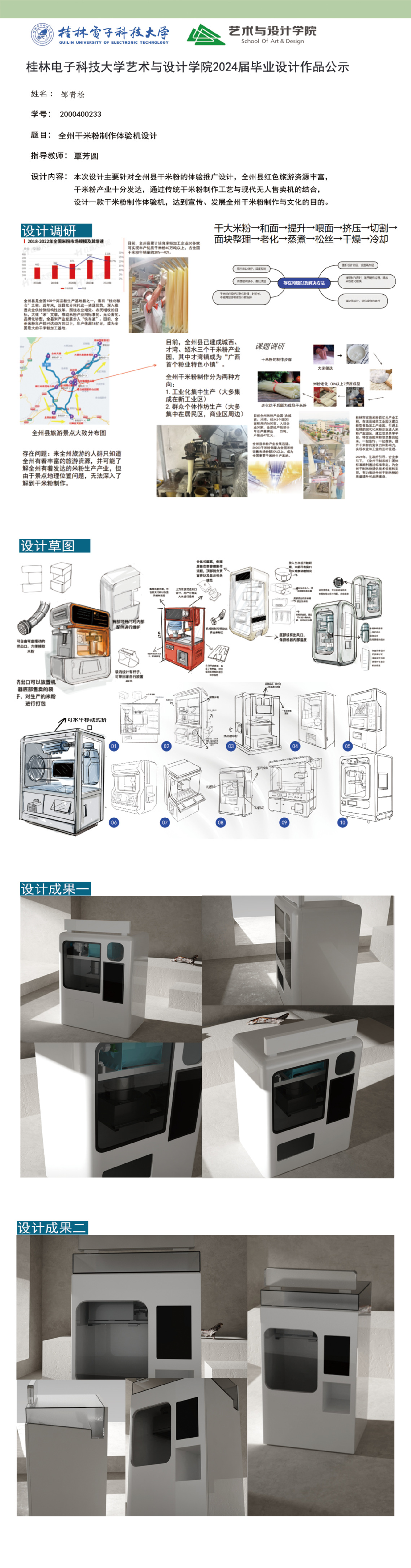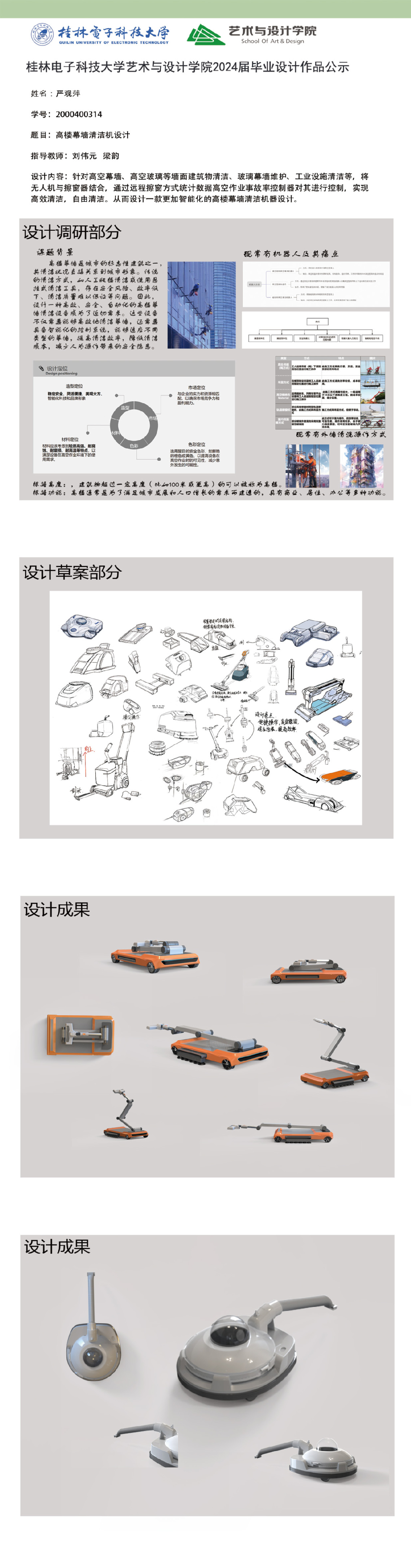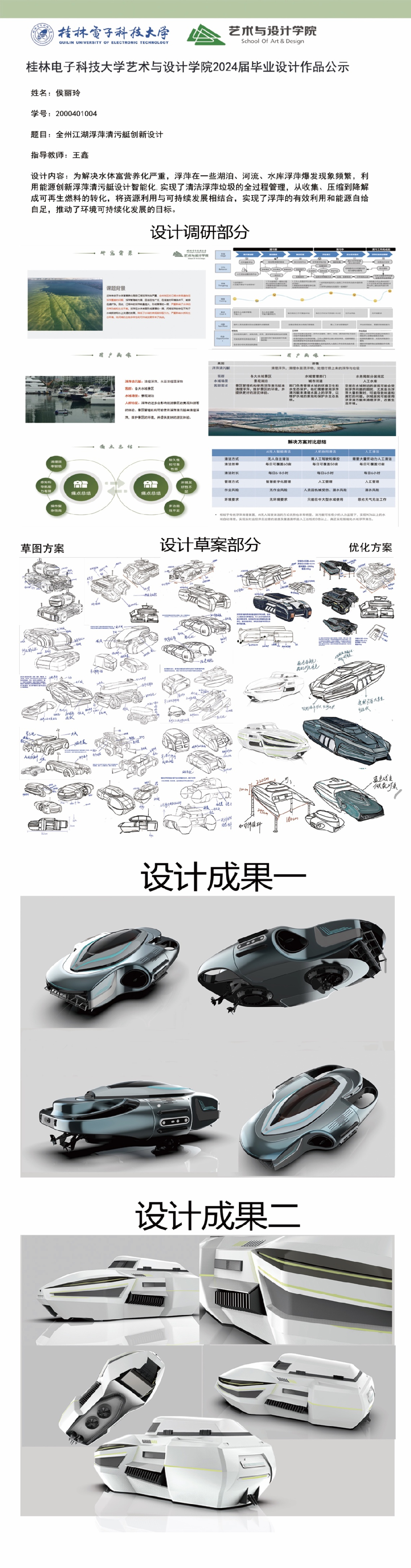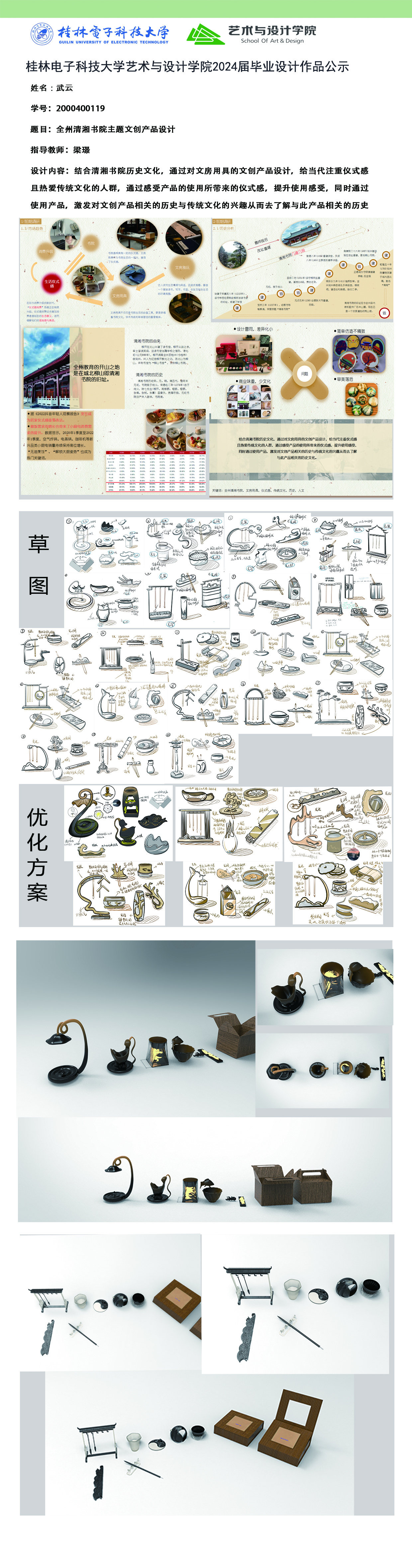 根据毕业设计管理文件规定,现将2024届产品设计专业毕业设计作品进行公示。对所公示的作品如有疑议,请实名举证。公示期为三天(2024.04.25-2024.04.27)。作品公示期间的意见反馈邮箱:360758122@qq.com,联系电话:18978660487。