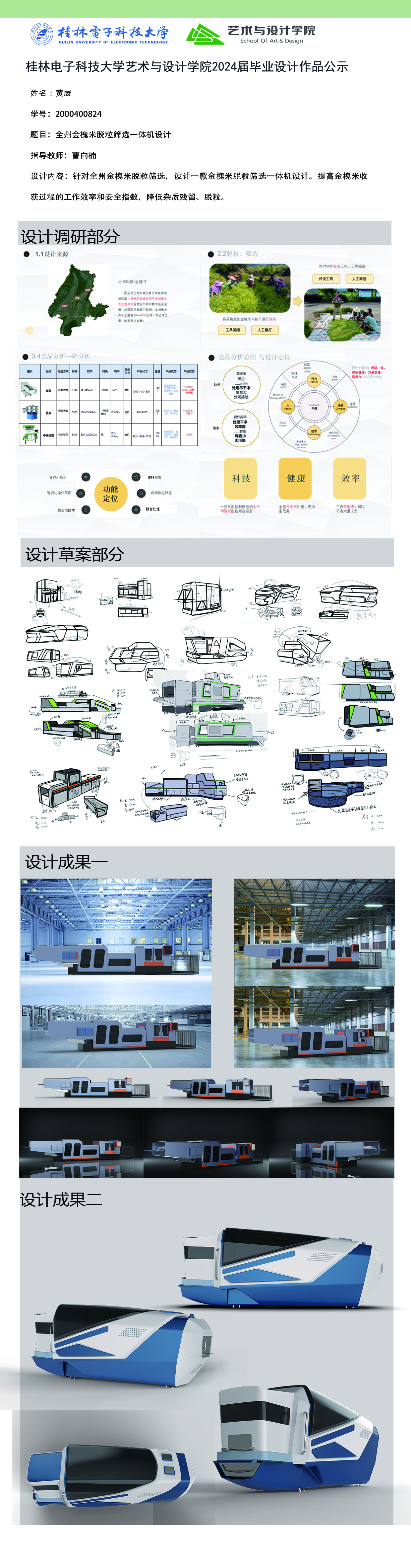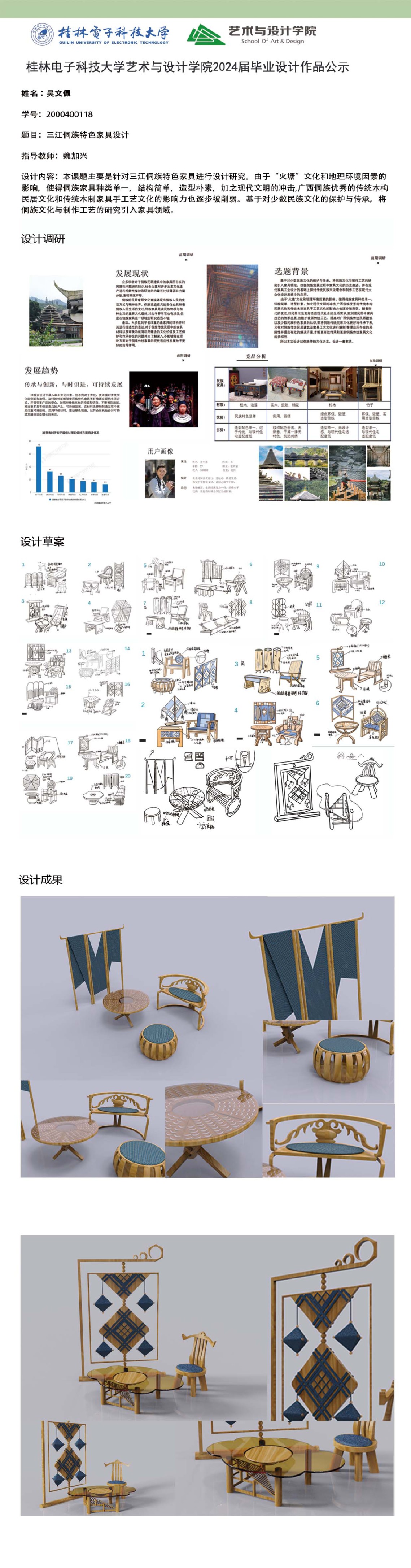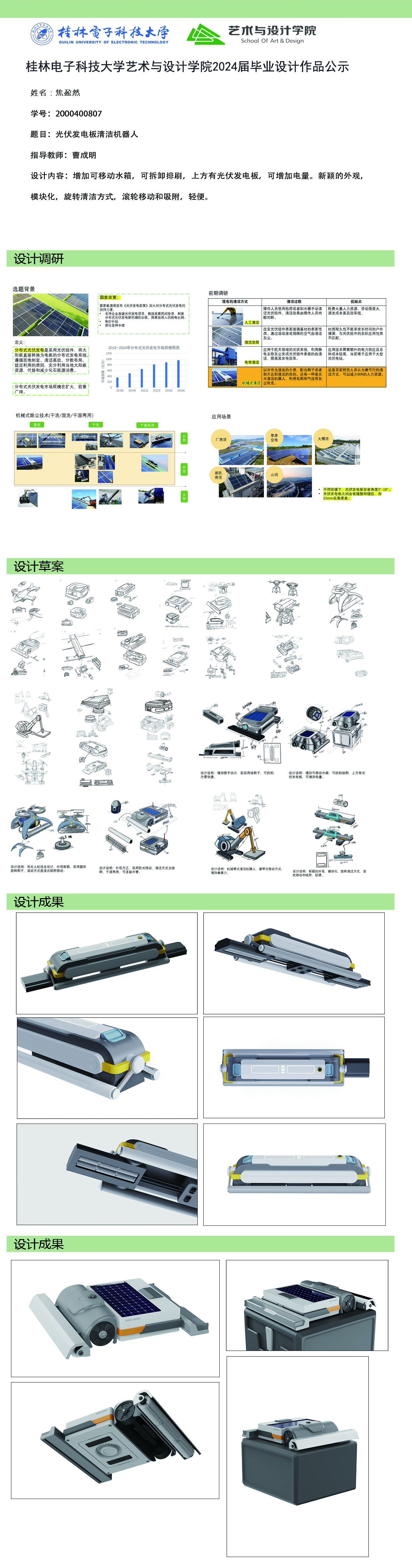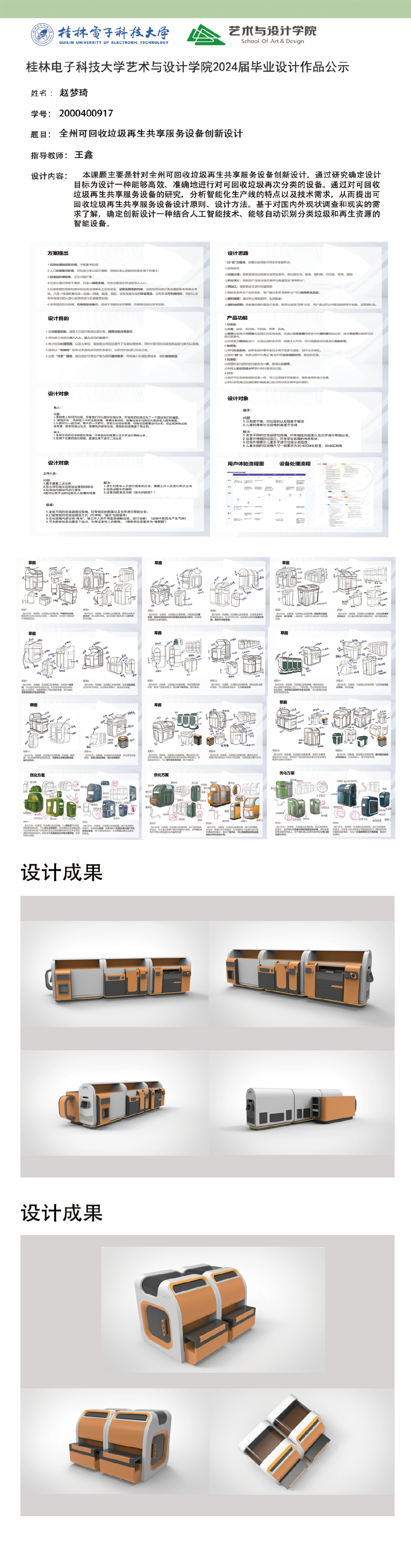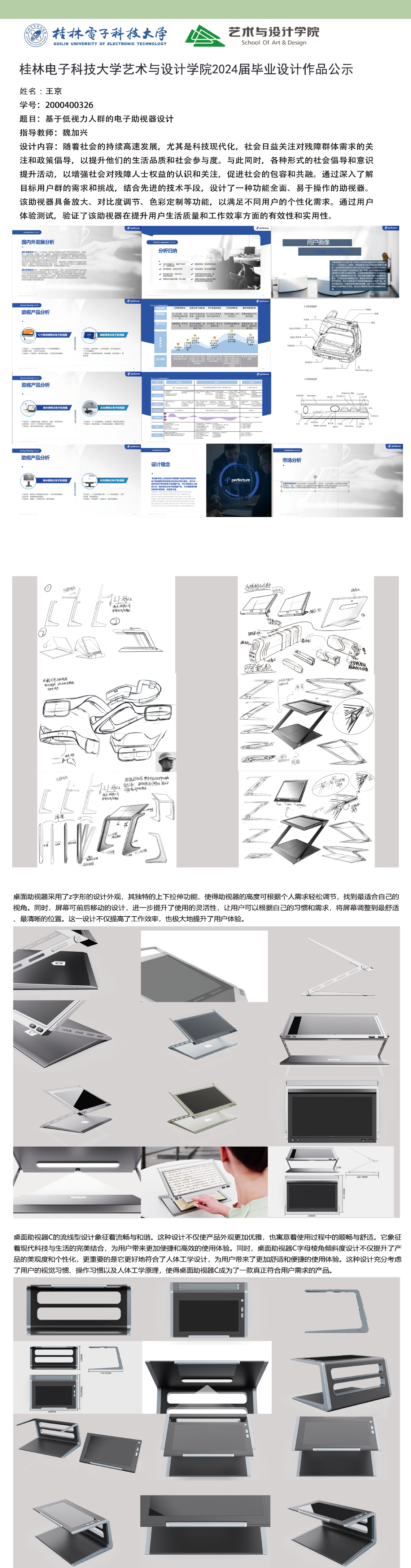 根据毕业设计管理文件规定,现将2024届产品设计专业毕业设计作品进行公示。对所公示的作品如有疑议,请实名举证。公示期为三天(2024.04.25-2024.04.27)。作品公示期间的意见反馈邮箱:360758122@qq.com,联系电话:18978660487。