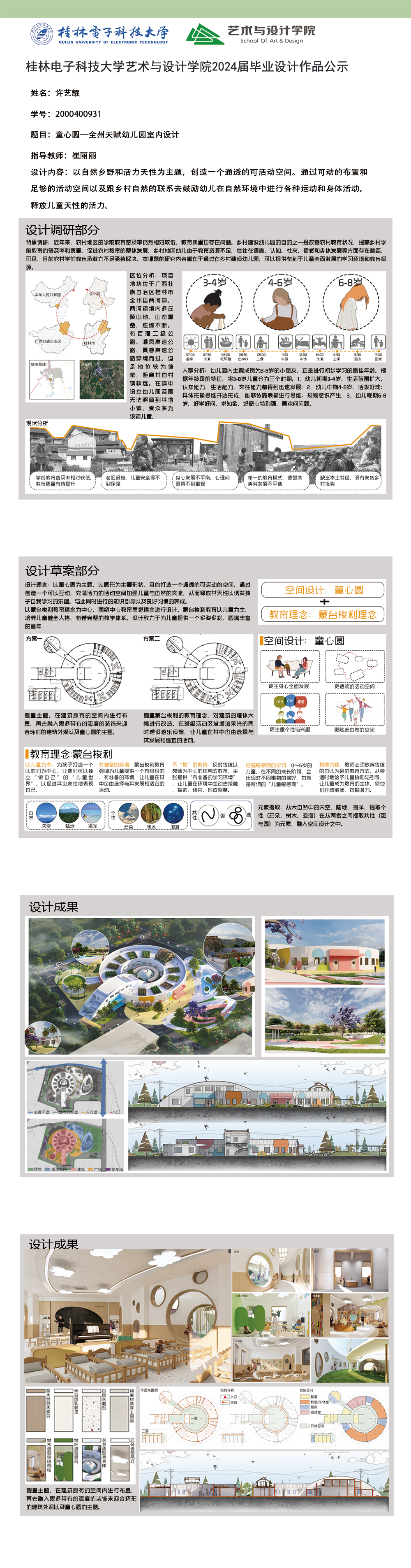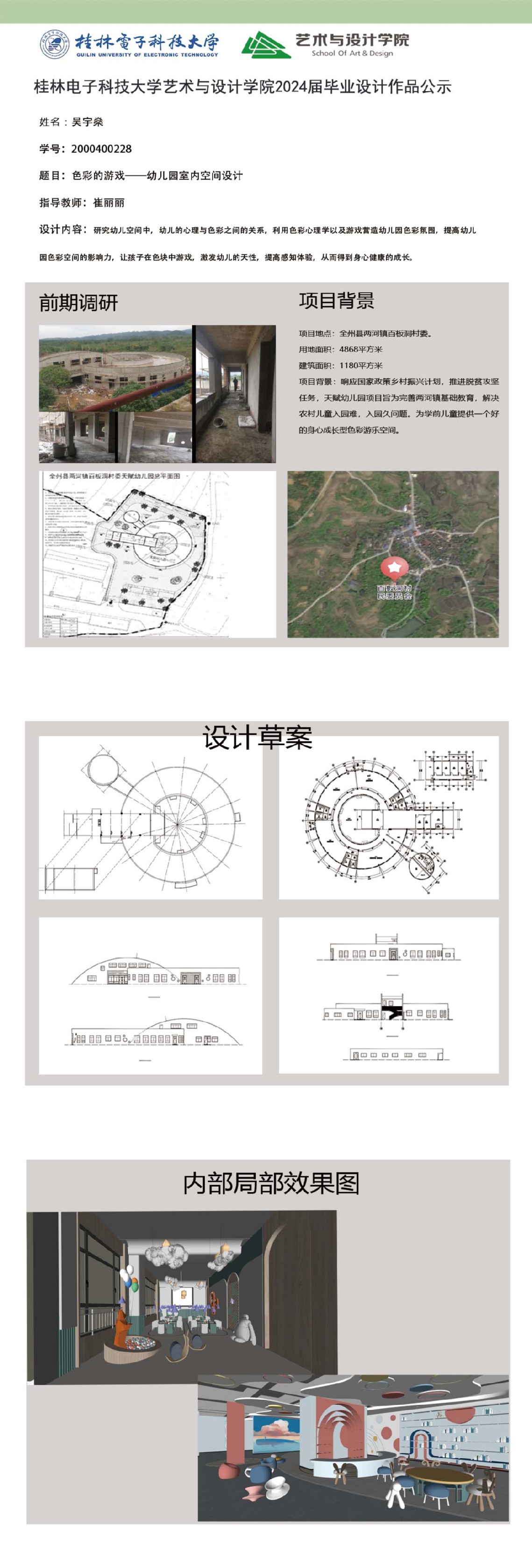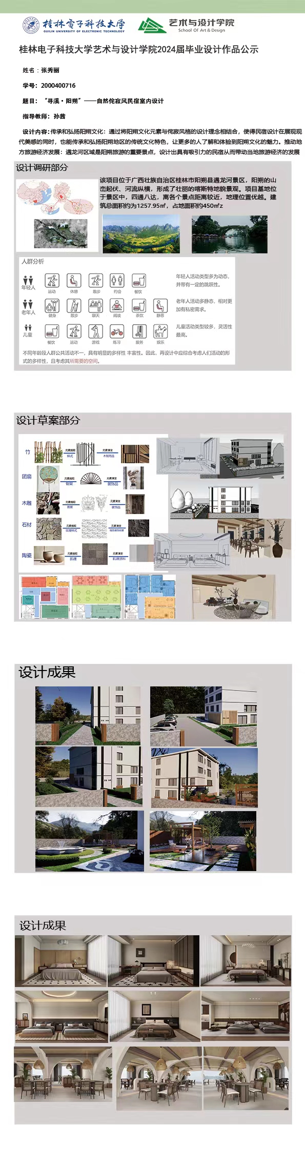 根据毕业设计管理文件规定,现将2024届环境设计专业毕业设计公示作品有错漏信息的进行更正公示。对公示的更正作品如有疑议,请实名举证。意见反馈邮箱:19059776@qq.com,联系电话:13457651975。