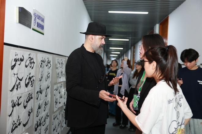文字和符号的设计过程”,指导学生创造独特、简单、清晰的图形符号,整合图形元素、颜色和排版,形成有效的视觉表达。David Torrents带来了“海报的声音”主题,引导学生设计传递拟声词的海报,使非中文背景的人也能感知其发音。Arkadiusz Mieczyslaw Marcinkowski则围绕“创造性算法:人工智能和当代艺术的交集”展开探讨,鼓励学生思考人工智能如何重塑艺术创作和表达的界限。Lisa Saddik和Jesse John Thompson联合带来的“消除你的恐惧”工作坊,通过创造性表达帮助学生面对内心的恐惧,同时提升绘画技巧和解决问题的能力。Kim Hyungjoo的“自我认同的文字立方体”工作坊,鼓励学生通过排版在三维空间展现自我身份,开启创意探索之旅。
