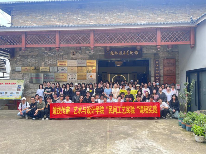 艺术与设计学院视觉传达设计专业与桂林广恒工艺品有限公司展开深度合作,着力推动校企合作下的产业课程改革。此次改革以宋冬慧教授主讲的2022级《民间工艺实验(非遗技能)》课程为基础,采取“走出去”与“共同培育”相结合的教学方式,学生前往桂林广恒工艺品有限公司进行校外实践,深度参与非遗文化的传承与创新。