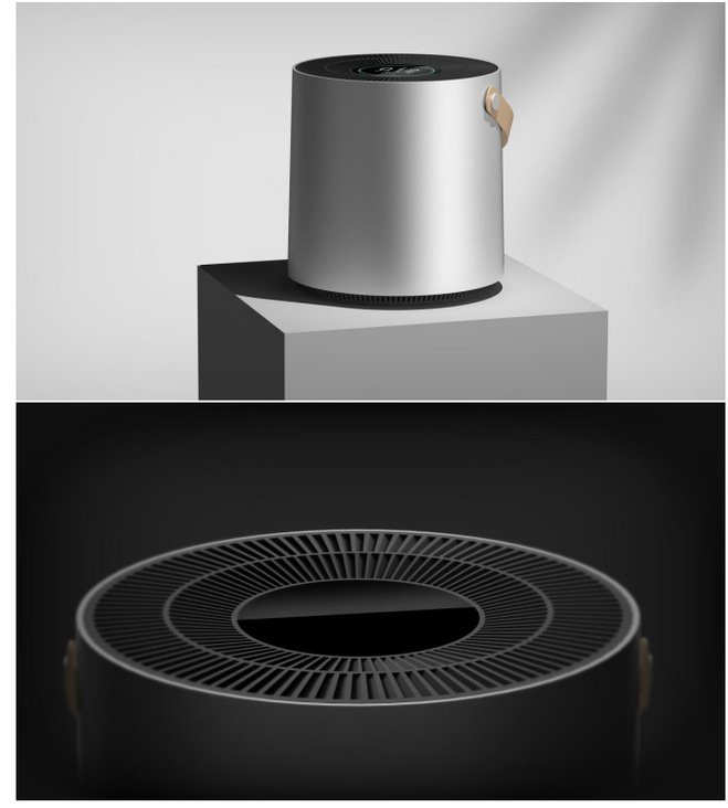 作品简介:随着城市空气污染问题日益严重,空气净化器逐渐成为居家环境必备的家电之一。然而,市面上的空气净化器以内置滤网为主,但这会造成用户反复清洗滤芯,频繁更换滤芯也会造成资源浪费和环境污染。电子风空气净化器通过静电高温送风技术净化空气,设备开启后,金属滤网间会形成“电子风”,当空气中携带的PM2.5、甲醛、香烟、细菌病毒等被吹入滤网后会瞬间被高温碳化以达到净化效果。不同于目前市面上的空气净化产品,该设计采用无滤网设计,无需清洗,提升了用户体验的便捷性,减少资源浪费,符合绿色设计的理念。便携手提皮带的设计方便用户携带空气净化器到不同的空间使用。