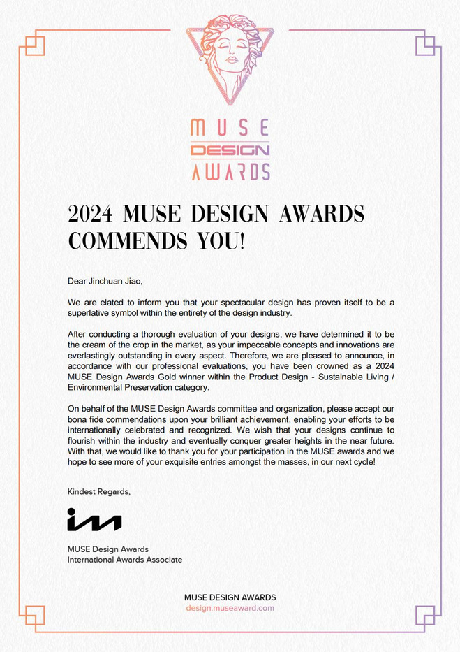 缪斯设计奖(MUSE Design Awards)是由美国国际奖项协会(IAA)于2015年创建,该奖项是全球设计领域颇具影响力的奖项之一,素有“设计界奥斯卡”之称,旨在表彰世界上最好的设计和创新。作为国际奖项协会(International Awards Associate)旗下的全球性品牌奖项赛事之一, 有来自超过40个国家的国际专业评委参与评审,评审标准包括学术、社区、创意、创新、教育、包容性等方面。