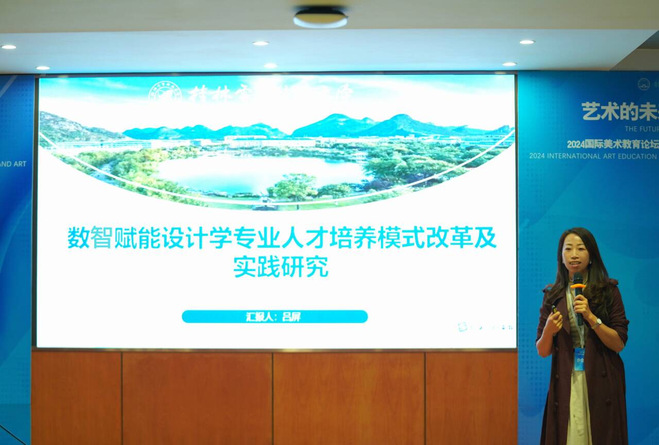 本次论坛从“国际美术教育发展与趋势、AI时代艺术创作实践、中韩与东盟国家艺术交流与合作”三个议题展开,共同探讨在全球化和信息化时代背景下,艺术教育工作面临的机遇与挑战。吕屏教授就“数智赋能设计学专业拔尖人才培养”进行了精彩的发言,她介绍了我院数智赋能设计专业人才培养改革的模式与情况。并指出,面对当今科技革命和产业变革的加速演进,大数据、物联网、云计算、人工智能等科技发展日新月异的新机遇。设计学专业应立足当下,直面现实问题,为时代变革提供支撑服务;又面向未来,探索可持续发展路径,强化创新引领。