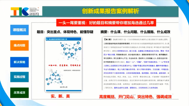 会上,马林强调了会议的主旨。随后,宋冬慧教授以丰富的教学创新大赛经验,详细解读了教学报告的撰写技巧、教学设计录制的关键要点以及备赛策略。在报告撰写方面,从学情变化、评分标准出发挖掘痛点,针对设计类课程,从学情、专业课程要求、课程建设等方面着手,围绕教学痛点,通过真实性、指向性和关联性证据论证观点形成完整教学模式,在创新报告撰写与录制技巧方面,宋冬慧教授提出诸多注意要点,助力教师更好展示成果。