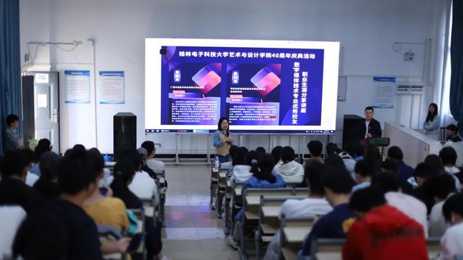 广西中微总经理李东洋则开展企业宣讲式讲座,介绍了公司在产业数字化技术领域的布局,涵盖“AI +”数字化运营、3D数字内容制作、软件开发等业务板块,以及与一汽、南方电网等知名企业的合作案例。他从企业用人视角,阐述了数字媒体人才在“AI + 产业”融合趋势下的核心竞争力要求,为同学们的学习与就业提供了清晰的行业参照。