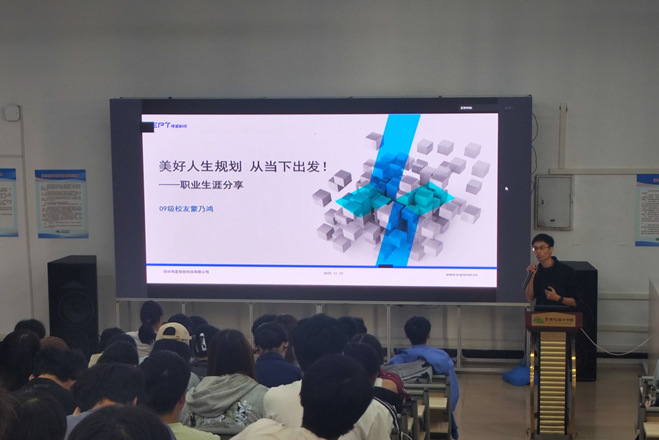 校友交流环节精彩纷呈,专题讲座更是干货满满。2009级校友、上海怿星智能科技有限公司技术总监蒙乃鸿带来“美好人生规划从当下出发!”职业生涯分享讲座。他结合自身从校园到职场的成长路径,剖析了数字媒体技术在智能科技领域的应用前景,强调职业规划要立足当下、锚定行业趋势,鼓励同学们在夯实专业技能的同时,培养项目管理与团队协作能力,尽早明确职业目标并分步践行,才能在行业浪潮中把握机遇。