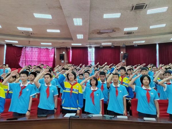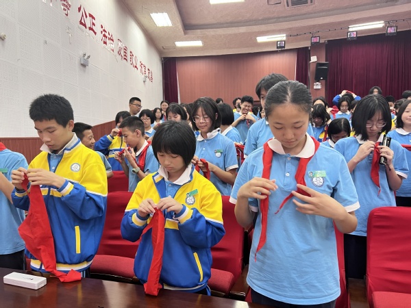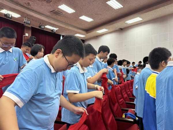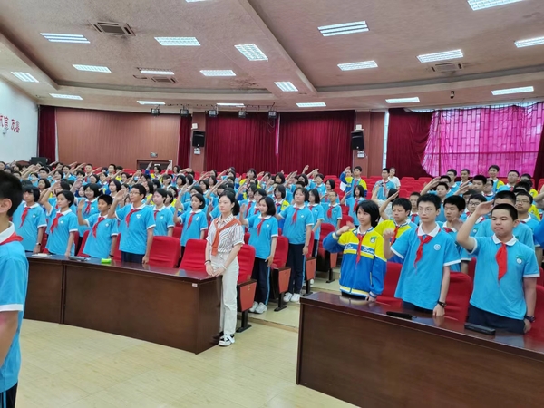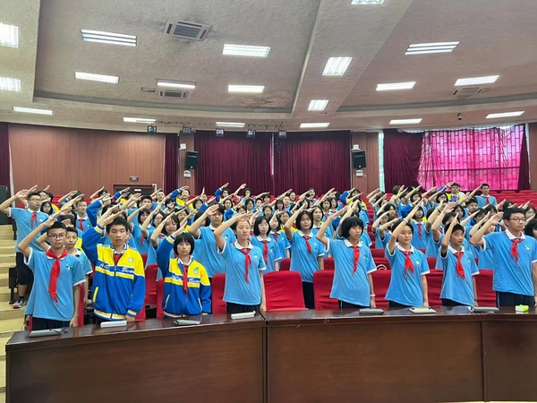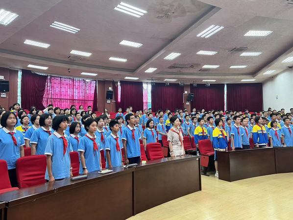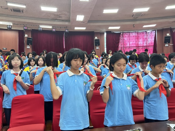 5月31日下午,桂电附属学校2023级初一全体学生在年级组老师的组织下,参加了“红领巾,心向党”的退队仪式。一场仪式,预示着一场青春的盛放,标志着同学们从少先队员转变成青年,迈向新的人生阶段。退队不退志,他们将以昂扬的姿态开启青春的新征程!