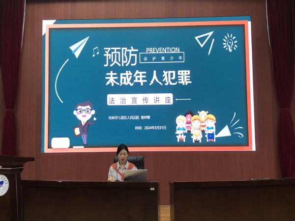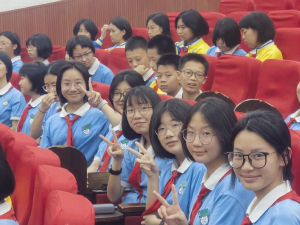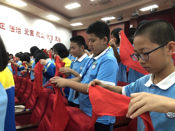 桂电附校李奕嘉同学作为少先队员代表发言。她坚信只要我们牢记使命,跟党走,就一定能继承发扬民族复兴的使命。教师代表李雪老师对同学们寄予期许和鼓励。随后,桂林电子科技大学附属学校法治副校长、七星区人民法院秦时敏法官开展了法制宣传讲座,为同学们的青春之路提供法律知识和建议。退队仪式的最后一个环节,同学们默默将红领巾轻轻取下,珍藏起来,踏上新征程!