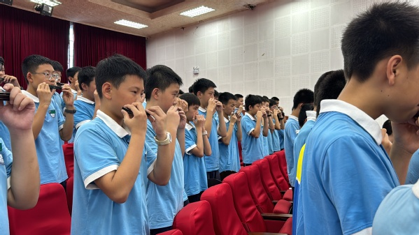 仪式中,看满座朝气蓬勃的学子面向国旗庄严敬礼,齐唱国歌,无不令人肃然起敬。看他们坚定的眼神,表达了对红领巾的珍视和对未来的憧憬。同学们齐奏口琴《小星星》,表达了对童年时光的怀念和对青春的向往。