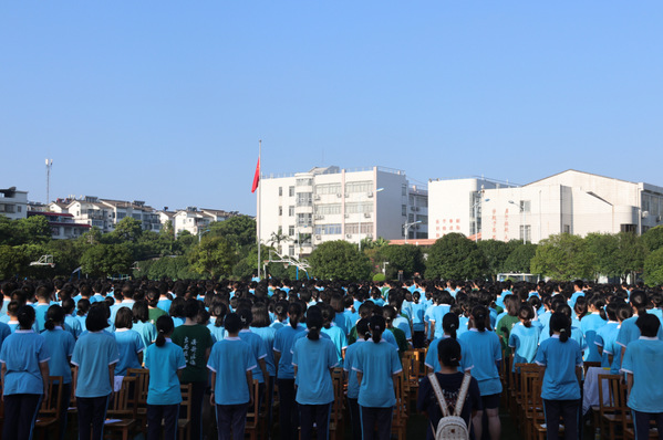 慷慨激昂的国歌,吹响了新学期的号角,迎风飘扬的红旗,点燃了每个人的爱国热情。全体师生庄严肃立,意气风发,斗志昂扬,怀着共同的理想、共同的追求,带着对美好未来的无限憧憬,共同开启新学期。