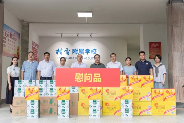 9月10日,第40个教师节之际,桂林信息科技学院党委书记甘勇率慰问团到桂电附属学校开展教师节慰问活动,桂电中学、桂电附属学校校长彭剑波及相关部门负责人参加慰问。