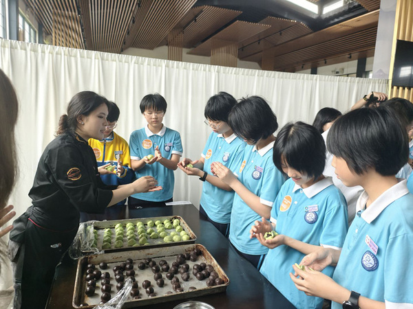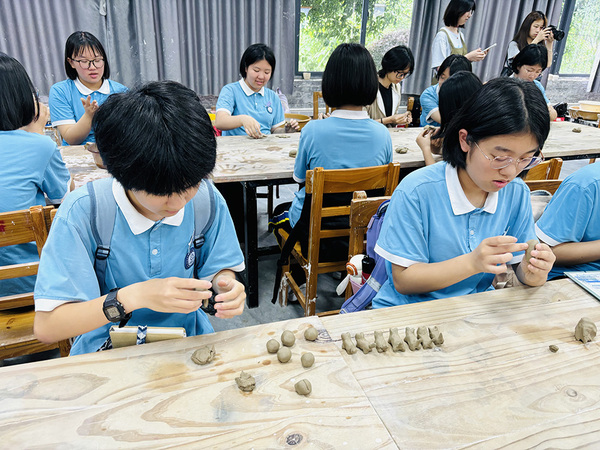随后,美食制作与手工创作将活动推向高潮。在青团制作区,同学们效仿老师示范的步骤,将红豆馅料包入面团,捏出圆润造型。当清香软糯的青团出锅时,大家品尝着自己的劳动成果,感受着传统美食背后的文化底蕴。而在陶艺手工课上,同学们充分发挥创意,将陶泥塑造成各种各样的造型,在塑形的过程中,体验传统手工艺的魅力,也锻炼了耐心与动手能力。