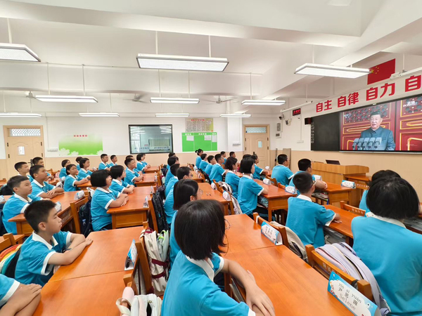 2025年9月3日,桂电中学、桂电附属学校组织全体师生集中观看中国人民抗日战争暨世界反法西斯战争胜利80周年阅兵仪式。
