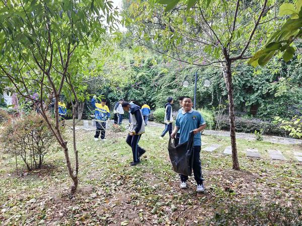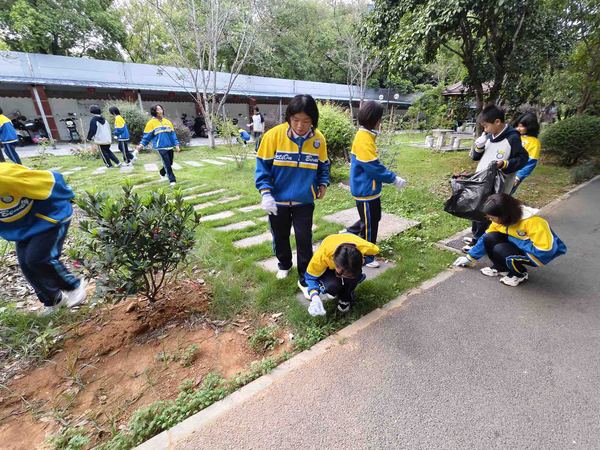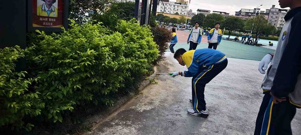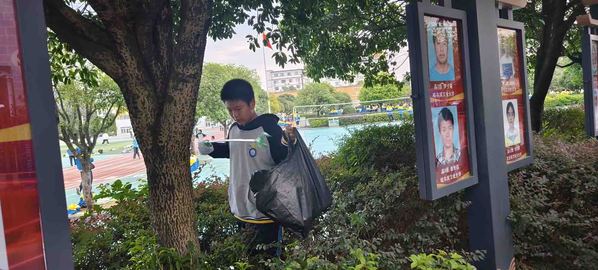 活动当天,在负责人的统一安排下,志愿者们分成两组有条不紊地开展工作。第一组志愿者手持垃圾袋、夹子等工具,穿梭在校园的各个角落,重点清理了操场、绿化带、教学楼周边的塑料瓶、废纸、零食包装袋等生活垃圾。他们弯腰俯身,不放过任何一个卫生死角,哪怕是藏在草丛中的细小垃圾,也耐心地一一拾起。另一组志愿者则聚焦校园绿化带的杂草清理工作。面对顽强生长的杂草,大家两两配合,有的用手拔除,有的借助小铲子等工具,小心翼翼地将杂草连根清除。