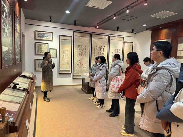 我们随堂聆听了一节语文课,授课内容为“对联”,整个课堂就像一副佳联,上下求索而浑然天成。老师以生活为素材,教会学生撷取市井楹联之趣,典故与妙对齐飞,雅韵共巧思一色。不仅点燃了学生试对的热望,更令听课老师们心生向往之情。我们还在古琴音乐赏析课中感受了清微淡远的雅韵,于美术课堂邂逅色彩与线条的奇妙碰撞。信息技术、通用技术课的动手实践,校本戏剧课的舞台演绎,无不彰显着“在做中学”的智慧。尤为印象深刻的是,艺术课程作为必修,实行学分制与自主选课模式,真正将兴趣的种子播撒进学生心田,让美的素养悄然生长。学校自建的博物馆,本学期以“观戏”为主题,一器一物,皆由主管老师倾注心血精心布置,成为师生流连忘返的灵动课堂,其情怀与匠心,令人叹服。