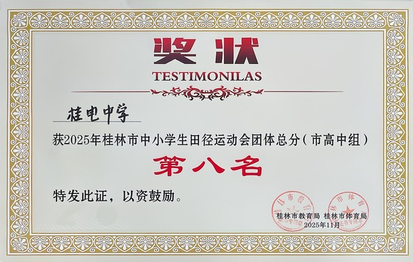 桂电中学荣获桂林市中小学生田径运动会高中组团体总分第八名