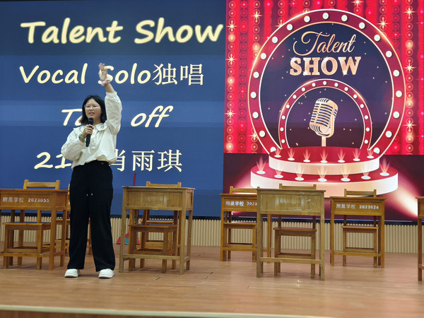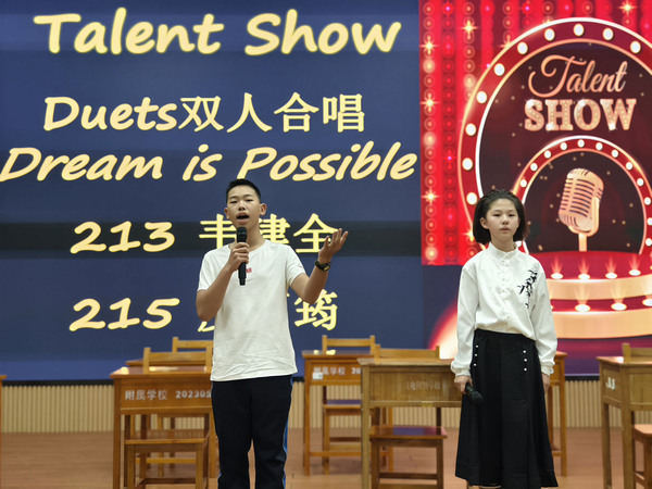才艺秀环节将活动推向高潮。同学们各展所长,英文歌曲独唱和英语歌曲合唱节目轮番上演。精彩的表演不仅展现了同学们多样的才艺,更体现了他们对英语语言文化的深刻理解与灵活运用,赢得了现场师生们的一致好评。