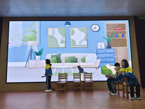 随后进行的英文课本剧表演环节精彩纷呈。各班级精心编排的剧目均取材于课本内容,同学们通过生动的肢体语言、富有感染力的台词表达,将课本中的场景鲜活再现。各班演员们全身心投入,角色塑造惟妙惟肖,既还原了课本内容的精髓,又融入了自己的理解与创意,充分体现了英语学习的实践性与趣味性。