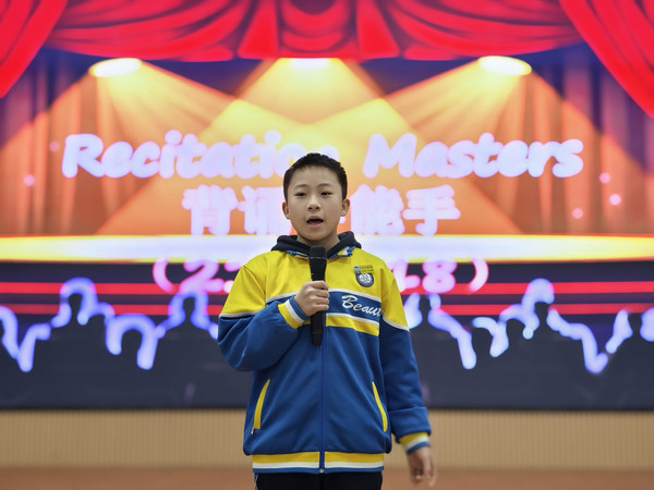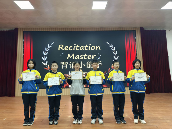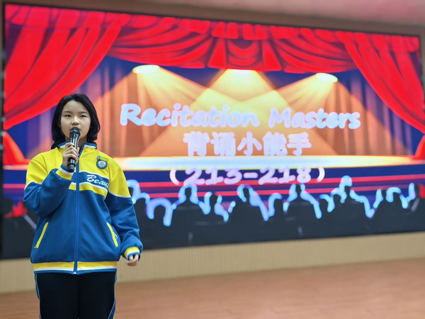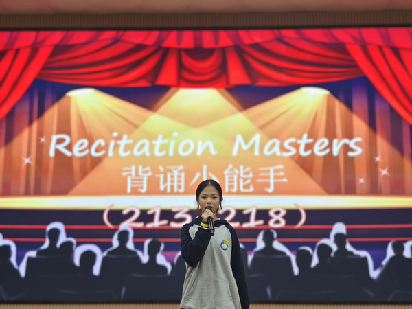 班级背诵与个人背诵环节,同学们展现了扎实的英语基础。班级背诵时,各班级队列整齐,背诵流畅且富有节奏感;个人背诵环节,同学们自信从容,发音标准、语调自然,从容展现了日常英语学习的成果,彰显了良好的学习态度与积累。