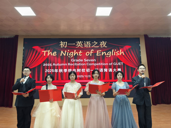 为丰富校园文化生活,激发学生英语学习兴趣,提升英语综合运用能力,2025年12月3日晚,桂电附属学校2025级七年级英语之夜活动顺利开展。整场活动氛围热烈浓厚,充分展现了2025级七年级学子的青春风采与扎实的英语素养,为校园增添了别样的文化活力。