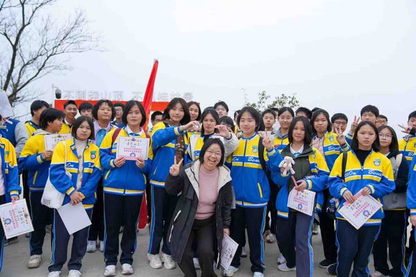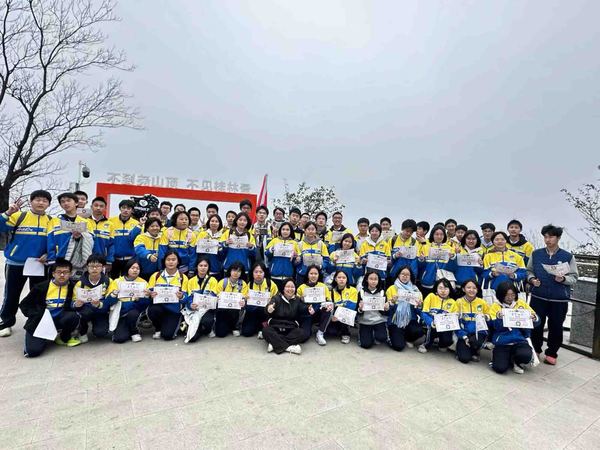 清晨,初三学子身着整齐校服,精神抖擞地在操场集结完毕。在带队老师的有序引导下,队伍满怀热忱出发,稳步向山顶前行。途经靖江王陵路段时,古朴的历史气息扑面而来,同学们深切感受到桂林作为世界闻名历史文化名城的深厚底蕴,更为自己身为这片岭南文化沃土孕育的中华儿女而感到自信与自豪。