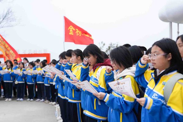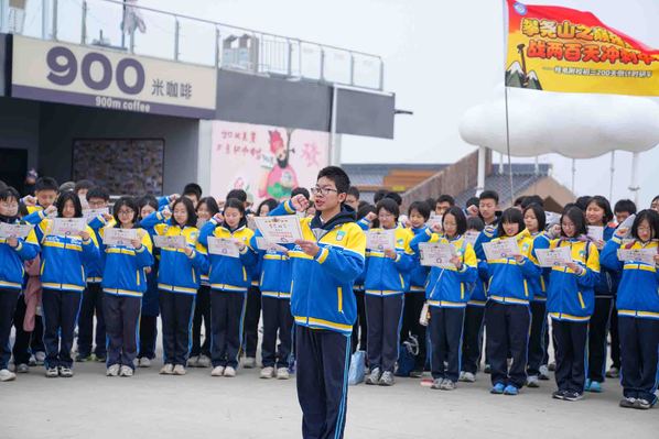 稍作休整后,庄重的誓师环节开启。学子们整齐列队,高举右拳,在学生代表带领下宣誓,铿锵誓言回荡山间。铿锵有力的誓言穿透山风,在尧山山谷间久久回荡,字字千钧,满含着冲刺中考的坚定决心。