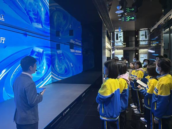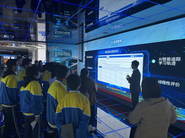 刚踏入润建人工智能展厅,AI 生成的动态视频便牢牢吸引了同学们的目光。讲解员结合视频生动解读了润建股份有限公司成为行业领先的人工智能行业模型及算力服务商的战略愿景,不再是晦涩的文字,而是看得见的科技蓝图。