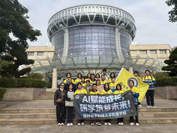 为深入贯彻落实人工智能教育在中小学阶段的普及与应用,推动科技与实践育人深度融合,12月6日,桂林电子科技大学附属学校的同学们怀揣好奇与期待,先后走进润建股份有限公司人工智能展厅、广西人工智能学院与广西民族博物馆,正式开启以“AI赋能成长,研学筑梦未来”为主题的研学实践之旅。同学们在沉浸式体验中解锁科技魅力,在文化浸润中厚植精神根基,让科技探索的热情与文化传承的种子一同生根发芽。
