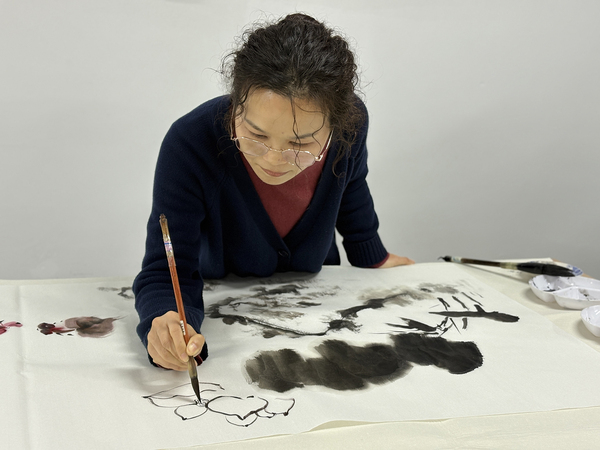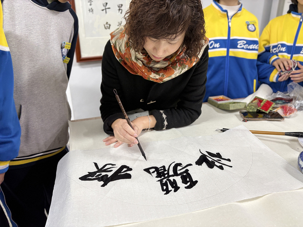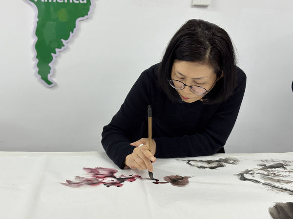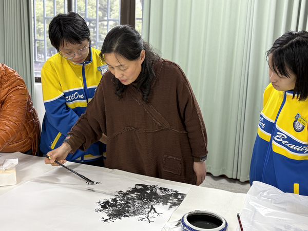 艺术分享与示范环节,女画家们各展所长、现场挥毫。她们一边落笔挥洒、勾勒点染,细腻的笔触、独到的构思让在场师生和家长们赞叹不已。