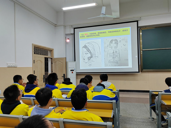 蓝振武老师以案例教学为核心,从学生自画头像切入,围绕画作纸张占比、线条流畅度、笔触力度、人脸朝向等10个维度,精准解读作品背后隐藏的情绪密码与个性特质。他指出,中学生备考压力多为一般心理状态,而绘画作为成本低、易操作、信息量大的情绪宣泄渠道,能让内心想法被看见、被理解。创作中融入的微笑元素、明亮暖色调与生机场景等积极资源,可让学子们释放压力,激发内在力量,进而改善情绪状态、提升适应能力。