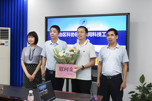 会上,孙杰远向蓝如师转达了自治区科协的关怀和问候,并赠送了鲜花和慰问金,对其在荣获国家级青年人才称号、第十七届广西青年科技奖等方面取得的成绩表示肯定。希望他在科学研究、社会服务等方面继续发挥引领作用,同时也祝福我校在各项事业上取得更好发展。