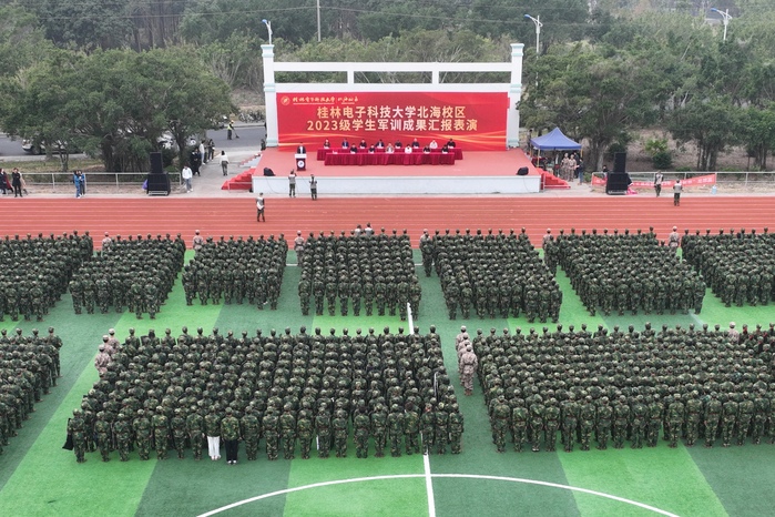 1月10日上午,北海校区2023级学生军训成果汇报表演在北海银滩校区田径场举行。校区领导陈名松、秦竟芝、王鑫、曹计划、孙永厚、王军、王宪中出席大会,大会由北海校区党委副书记曹计划主持。