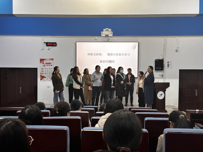 莫长华以“用心沟通 以爱陪伴”为主题,采用互动式教学参会教师们传授教育方法。通过情景模拟的方式,直观展现在不同的沟通方式下孩子们的内心想法与行为逻辑,鼓励家长多学习家庭教育知识,树立正确的家庭教育观,为孩子创造更加健康的成长环境。