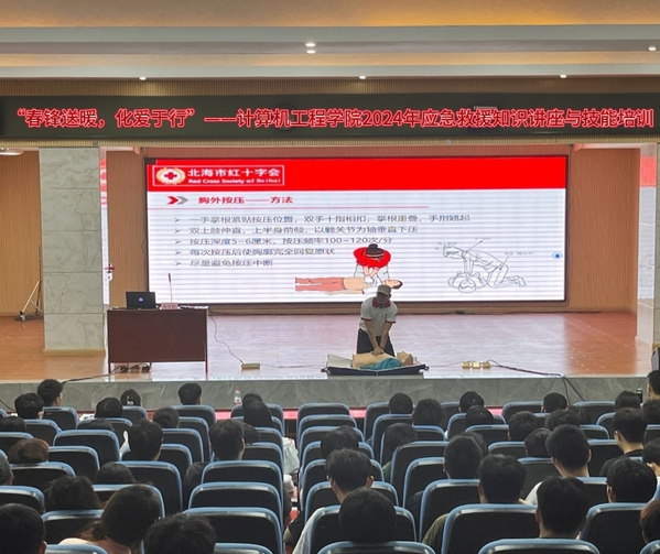 近日,计算机工程学院邀请北海市红十字志愿者协会讲师在南珠校区东区报告厅开展“春锋送暖,化爱于行”应急救援知识讲座与技能培训,学院辅导员及学生干部参加培训。
