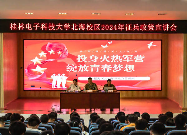 3月28日,由北海市银海区人民政府征兵办公室主办、桂林电子大学北海校区承办的征兵政策宣讲会在西区报告厅举行。