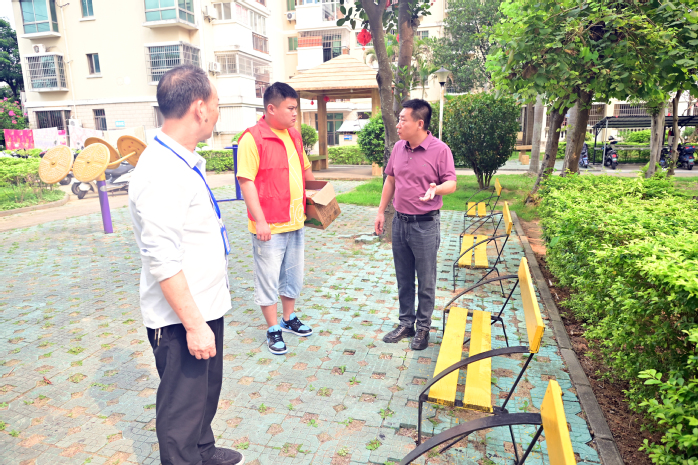 4月3日,桂林电子科技大学北海校区副校长王宪中到包干小区督导创城工作,小区物业负责人、校区创城专员陪同参加。