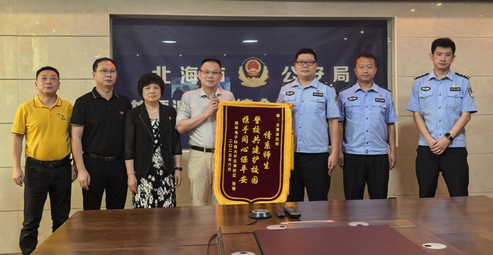 期间,北海校区教师代表林佩静、陈哲,龙潭派出所警员代表李浩天分别结合实际工作分享《深入贯彻中央八项规定精神学习教育》心得体会,北海校区校长陈名松代表校方向龙潭派出所赠送锦旗。