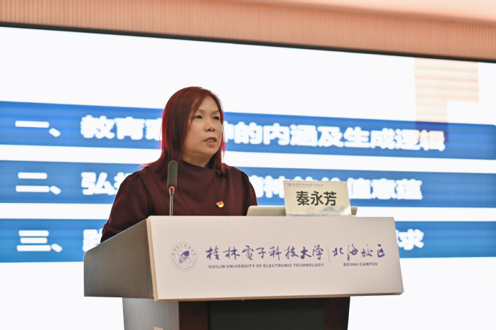 11月13日,北海校区于东区报告厅举办教育家精神宣讲活动。本次宣讲报告会特邀全国优秀教师、广西教学名师、我校二级教授秦永芳作报告。校区党委书记秦竟芝、副校长王军、各教学单位党政负责人以及全体教师参加。会议由副校长王军主持。