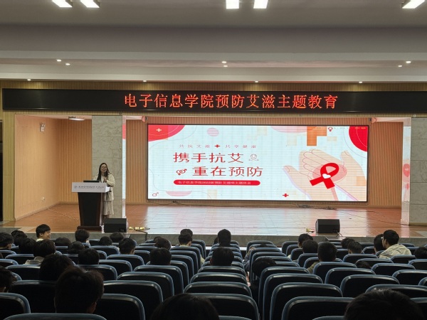 11月20日,电子信息学院在东区报告厅开展“携手抗艾 重在预防”主题教育活动,2022级全体学生参加。活动中,周娜结合真实案例深度剖析,向同学们系统科普艾滋病的医学常识、传播路径与科学预防方法,强化学生“健康第一责任人”的意识。