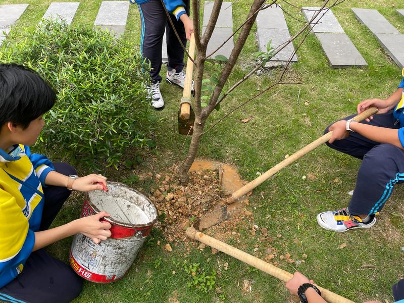 我校第三党支部、初二团支部开展 “植绿护绿,美化校园”活动