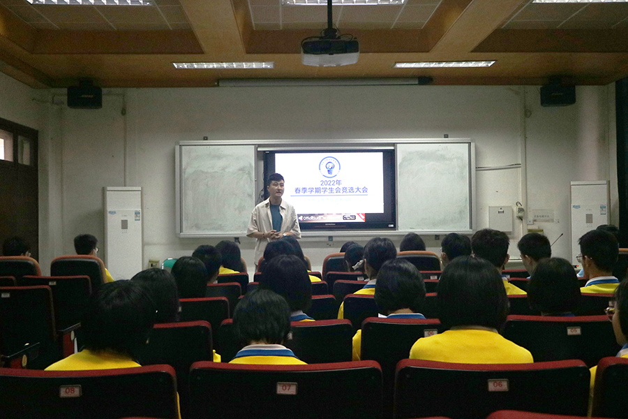 为学生会干部队伍能够及时补充新生力量,保持学生会工作的传承性和连续性,更好将学生工作做好做细。3月17日下午17点,我校于六教二楼教室召开2022年春季学期学生会干部竞选大会。 本次大会竞选的职位有学生会副主席、活动部部长、社会实践部部长、文化设计部部长等。大会伊始,团委翟书记对同学的积极参与表示赞赏,并向同学们讲述在学生会工作的付出与收获。学生会不仅是服务全校师生的组织,更是磨砺意志,提升自我能力的好平台。 随后,参加竞选的18位同学依次做了3分钟的竞选演讲,流利地表达了自己对于学生会工作的认识、自身优势、对竞选岗位的工作设想等。同学们自信大方,声音洪亮。展现了积极阳光、有思想有内涵、有责任担当的桂电学子风采,也让我们感受到他们对学生工作满满的热情。 大会最后,学生会主席王鹏夲对本次竞选进行了总结,期望各位竞选人在当选后为学生会作出更大的贡献与改变。