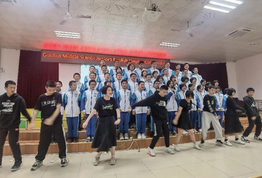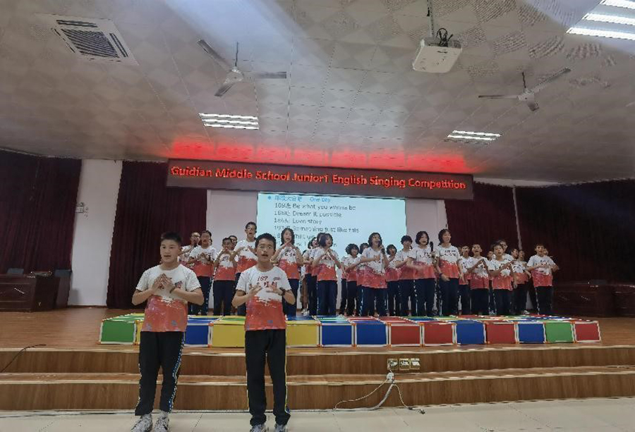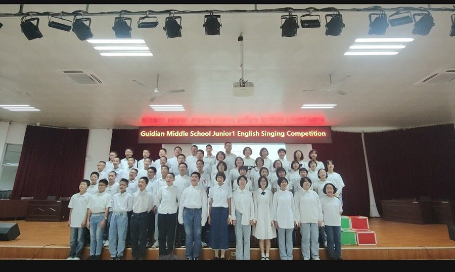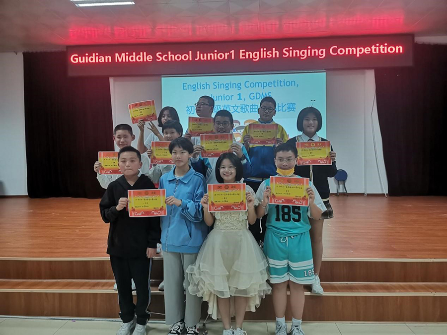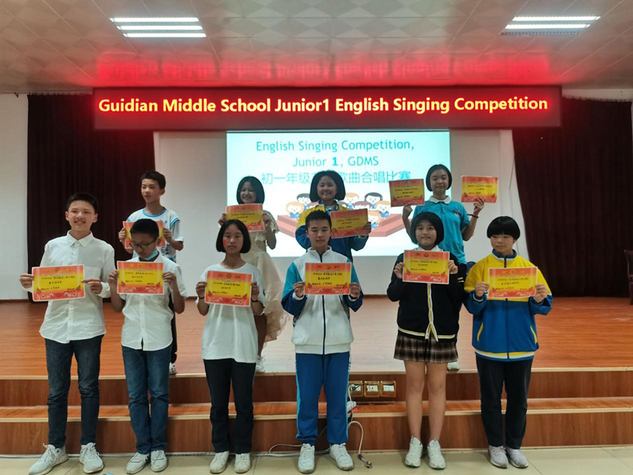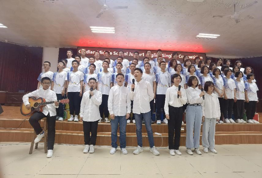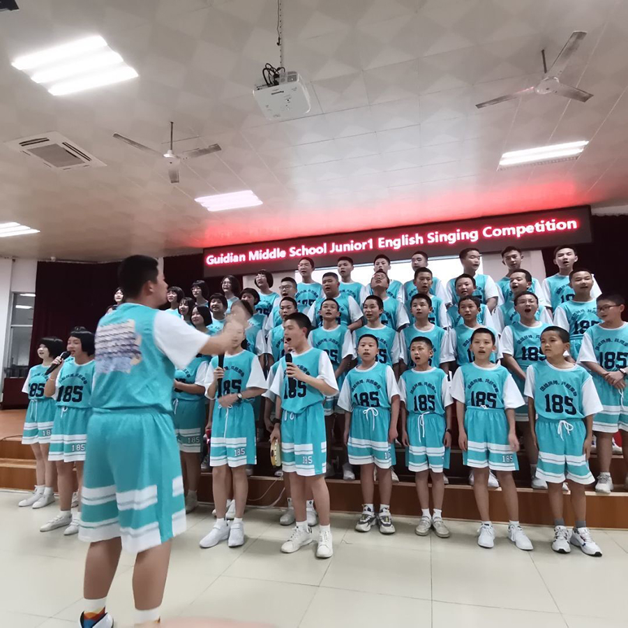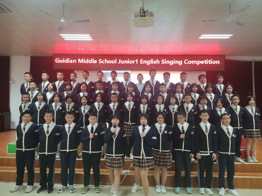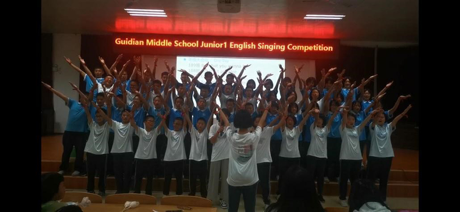 初一年级英语合唱比赛时间:[2022-04-20] 来源:初一年级 点击数:148