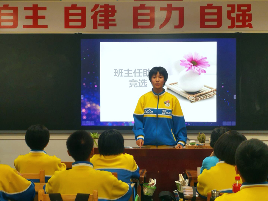 “自主”,是我校一直倡导的“五自”方针中的第一点,而自主管理,则是将能力和责任心运用到班级、奉献到集体的良好表现。为加强同学们自主管理的能力,强化其主人翁意识,提升统筹规划、团结协作、沟通交流等综合素质能力。5月16日早上八点,我校在田径场举行首届助理班主任聘任仪式,全校师生参加。 首先由180班奉逸舟和窄广昊两位同学作“自主管理促成长,争做优秀中学生”主题发言。他们发表了自己对于自主管理的理解,在发言中说道:“班级管理是我们自己的事情,班主任和班长是引导者和组织者,而我们才是班级的主人。每位同学都有义务承担班级、小组建设的责任。”他们呼吁大家一起尽情展示自己,张扬自己的个性,以昂扬的姿态迎接胜利的风帆。 接下来,51班文展培同学代表36位助理班主任作主题发言,她认为作为助理班主任,应该做到三“敢”:敢策划、敢担当、敢开口。在其位谋其职,出现问题时,不应畏手畏脚,而是大胆开口,以理性正确的方式解决问题。并且代表全体助理班主任做出承诺:在自主管理周期间,一定会本着服务班级、奉献集体的原则,尽自己最大努力完成这次自主班级管理工作。 随后,由政教处周荔主任主持我校首届助理班主任聘任仪式,在周主任宣读助理班主任名单后,校领导们为助理班主任颁发聘书、工作牌和班主任工作记录本并合影留念。接着,周主任作总结发言,周主任希望所有助理班主任都能履行自己的承诺,锐意进取,将班级自主精细化管理落到实处。并真切鼓励同学们:“你们就是民族的未来,国家的希望。‘自主、自律、自力、自强、自信’一直是我校的办学方针。大家要有舍我其谁的气魄,为期两周的班级自主管理评比仅仅是个开始,相信大家一定能在助理班主任及其团队的组织、带领下,迎接新挑战,寻求新突破,走向学生自主管理的星辰大海。” 此次“我是助理班主任”活动,前期经过一个月的筹划,通过自我竞选、他人推荐、民主投票,初一初二高一高二共产生了36名助理班主任。早在5月12日晚,政教处周荔主任在六教二楼会议室统一给助理班主任们做了全方位的工作培训,5月15日晚,助理班主任们在各班发表就职演讲,开始为期一周的班主任工作体验。此次活动,有利于提高同学们的自主管理能力,调动大家参与班级日常管理的积极性,更好营造自信、快乐、和谐的班级氛围。 初审:周荔 终审:周维霞