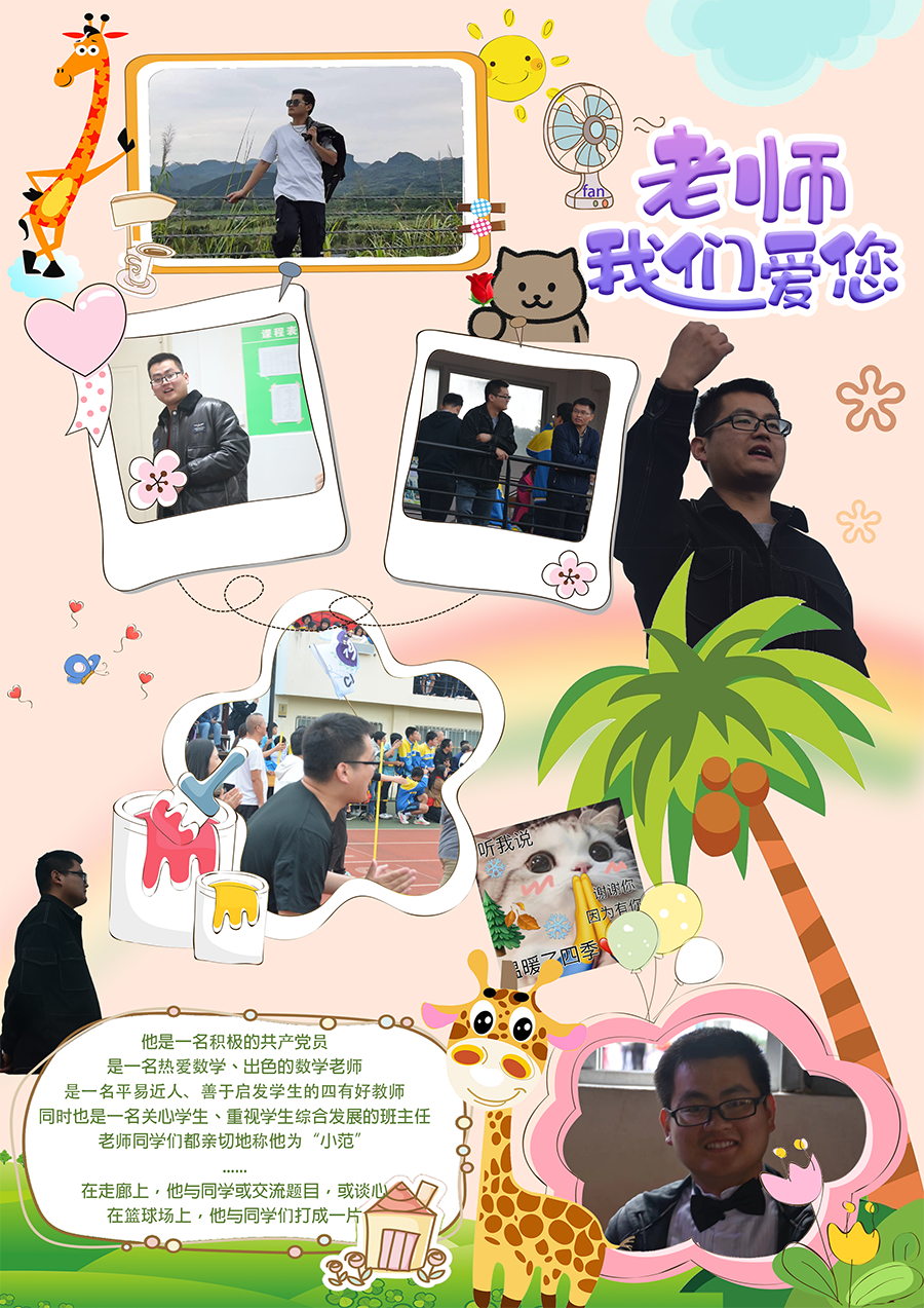 今天是520,学校政教处和团委举办的“桂电中学首届班主任节”正式拉开帷幕。各班同学们在助理班主任的组织下,为班主任们精心设计了表白感恩海报,感谢班主任们的付出与陪伴。五月,是我校的“感恩”主题活动月。怀抱一颗感恩的心,犹如在生命的旅途中点燃了一盏明灯。懂得感恩,就会真情永在;懂得感恩,就会真爱永存;懂得感恩,就会斗志不败;懂得感恩,就会幸福常伴。在这充满浓情与温暖的五月,我们荡漾于这缕感恩的和风中,使我们的学校变得更加美好、文明、积极、健康、有序。 高42 高43 高44 高45 高46 高47 高48 高49 高50 高51 高36 高37 高38 高39 高40 高41