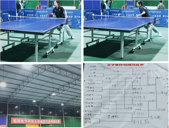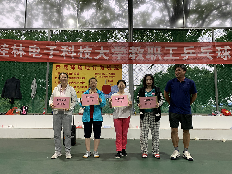热烈祝贺我校李佳蔚老师荣获桂林电子科技大学教职工乒乓球女子单打比赛冠军 附:女子第一名李佳蔚,第二名陶晓美,第三名刘艳平,第四名蒋红艳。