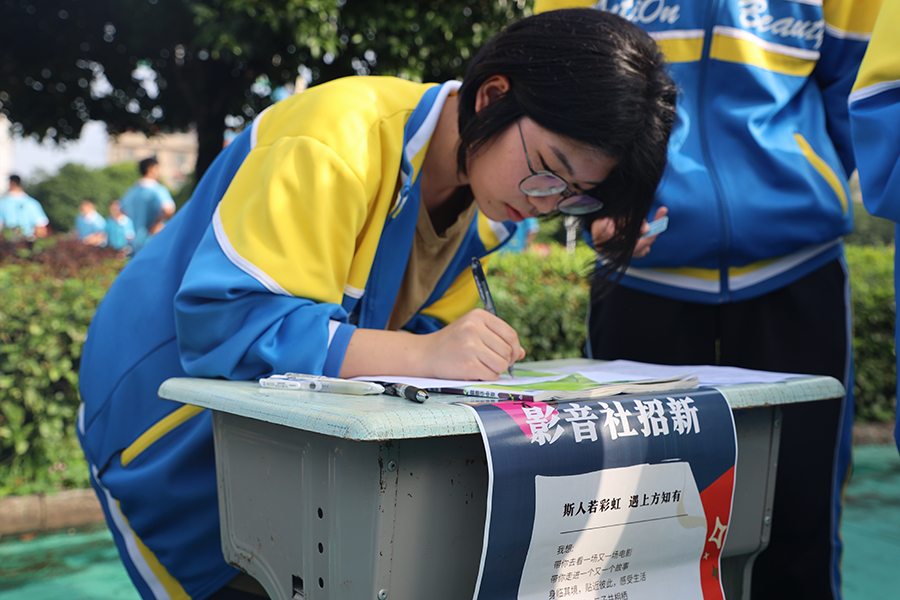 为丰富校园文化生活,发展我校特色文化,全面提高学生综合素质能力。5月25日下午五点,我校社团招新活动在操场三角区顺利进行。 截止2022年,我校社团涵盖学术、艺术、体育、影视、历史等多个种类,涉及多个领域,都是学生自主发起和自我管理的。本次招新的社团有羽毛球社、书法社、英语协会、影音社、街舞社、校乐队、烹饪社、阅读社、汉服社等特色社团。 活动现场热闹非凡,前来报名的同学络绎不绝。招新展示区内,社团发起人们使出浑身解数展现本社团的特色与魅力,吉他弹唱、街舞表演、书法作品展示等等,洋溢着青春的朝气与活力,极大地吸引了同学们的注意力。社团发起人们还耐心与报名同学交流答疑,介绍社团文化,努力为自己的社团争取更多的成员。下午六点,社团招新活动顺利结束,各社团之后将按社团章程和社团管理办法,有序组织开展社团活动。 社团不仅是学生发挥主观能动性的基地,也是学生开发潜能、展现自我的平台。丰富社团的活动,对于我校学生全面发展具有重大意义,同学们得以在课后时间丰富生活,培养兴趣爱好,结识志同道合的朋友,发展个人能力。相信在同学们的共同努力下,我校社团文化会愈发丰富多彩。 图文:团委学生会 初审:盘媛媛 终审:翟光嘉