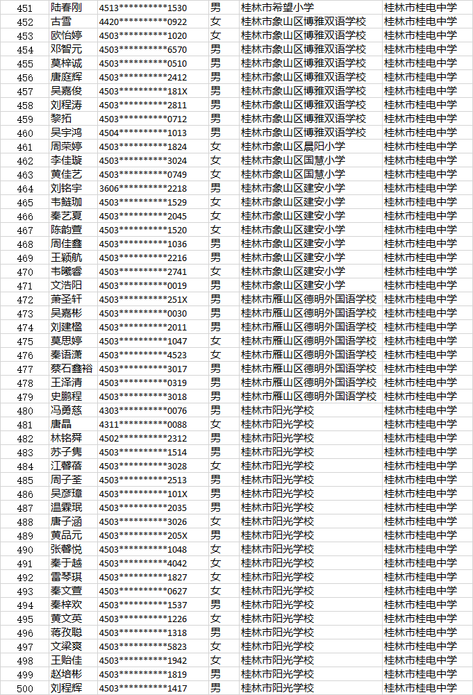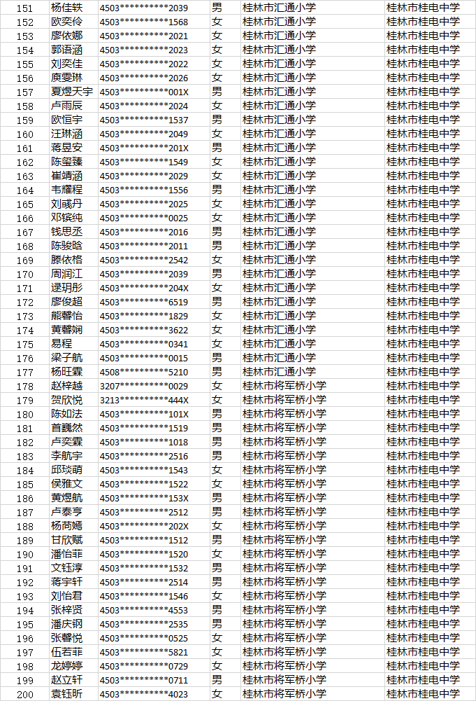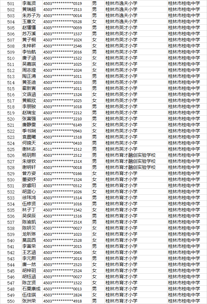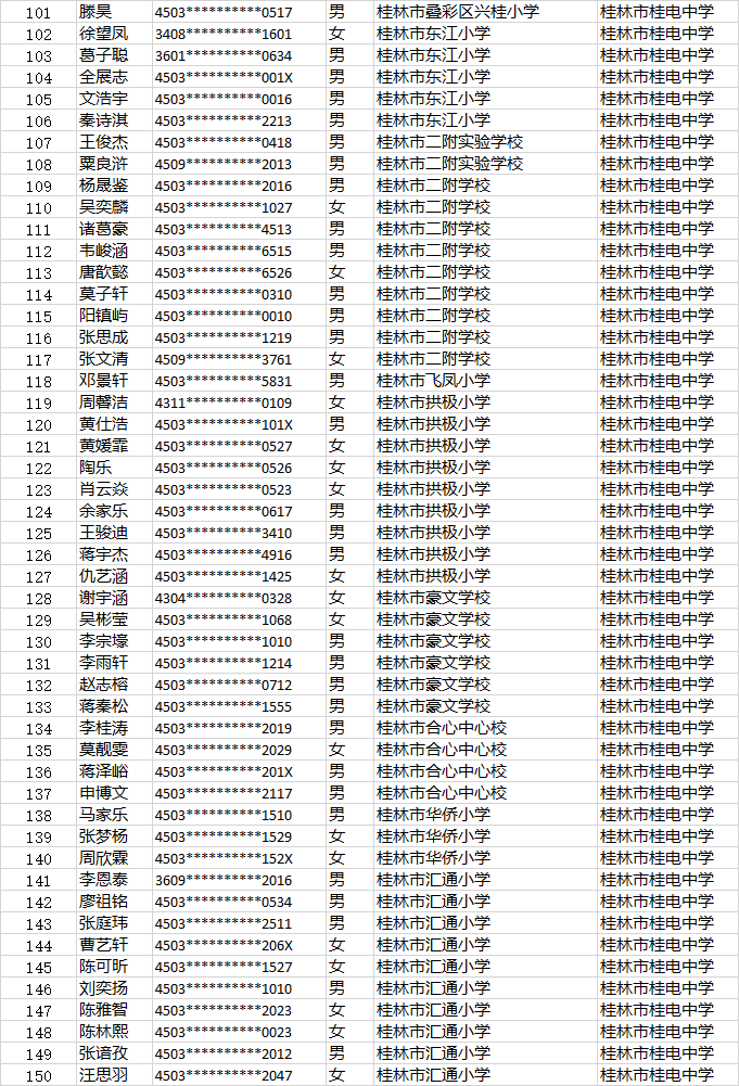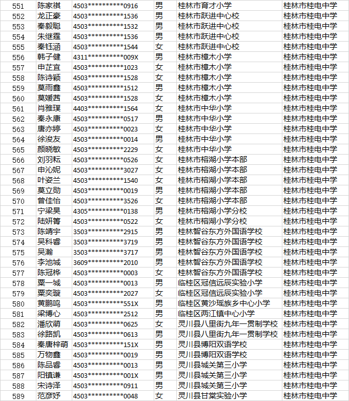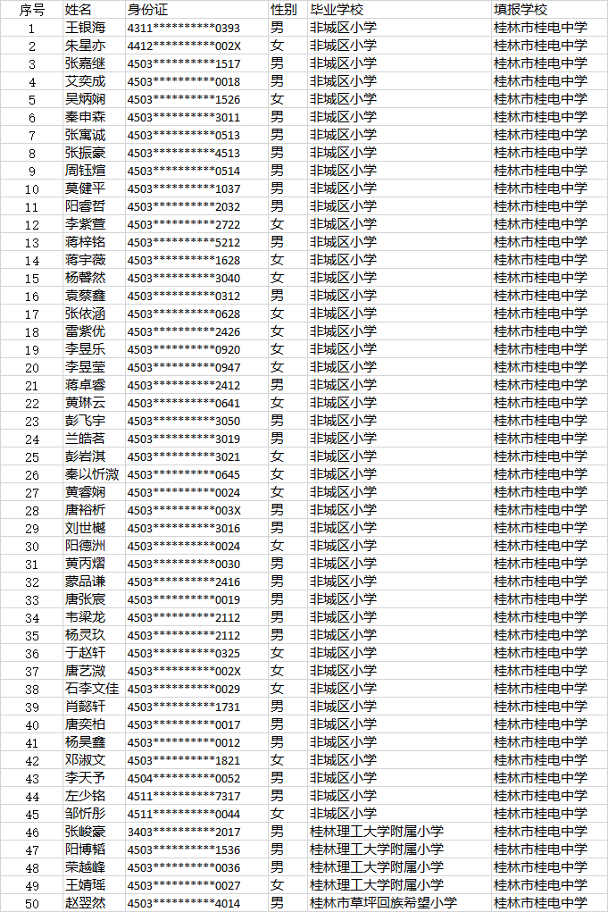 桂电中学小升初第二时段报名名单公示时间:[2022-06-23] 来源:教务处 点击数:274