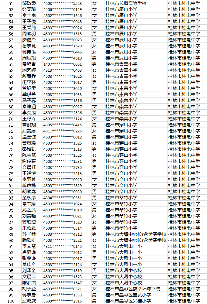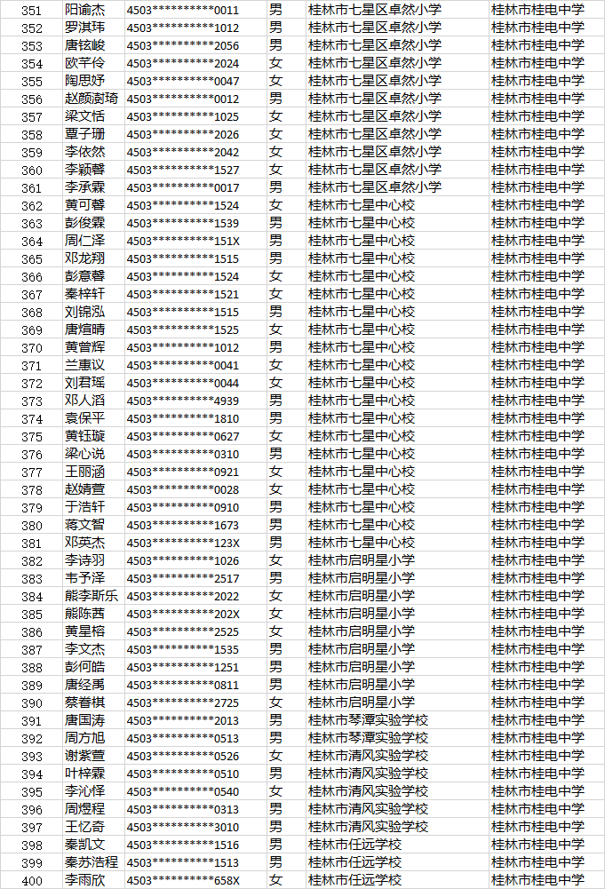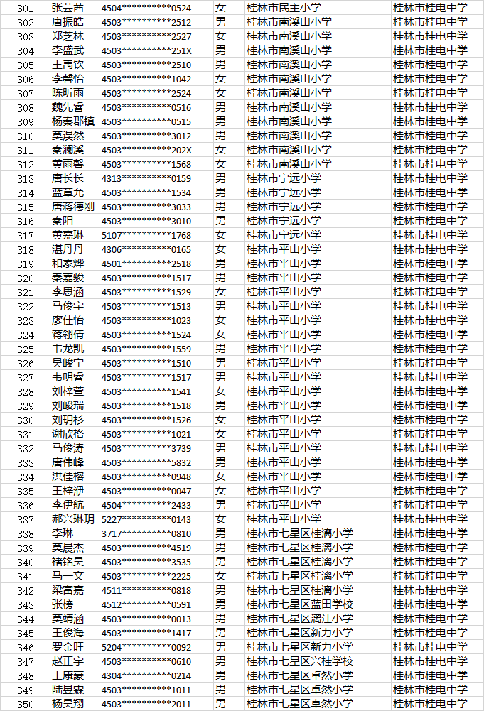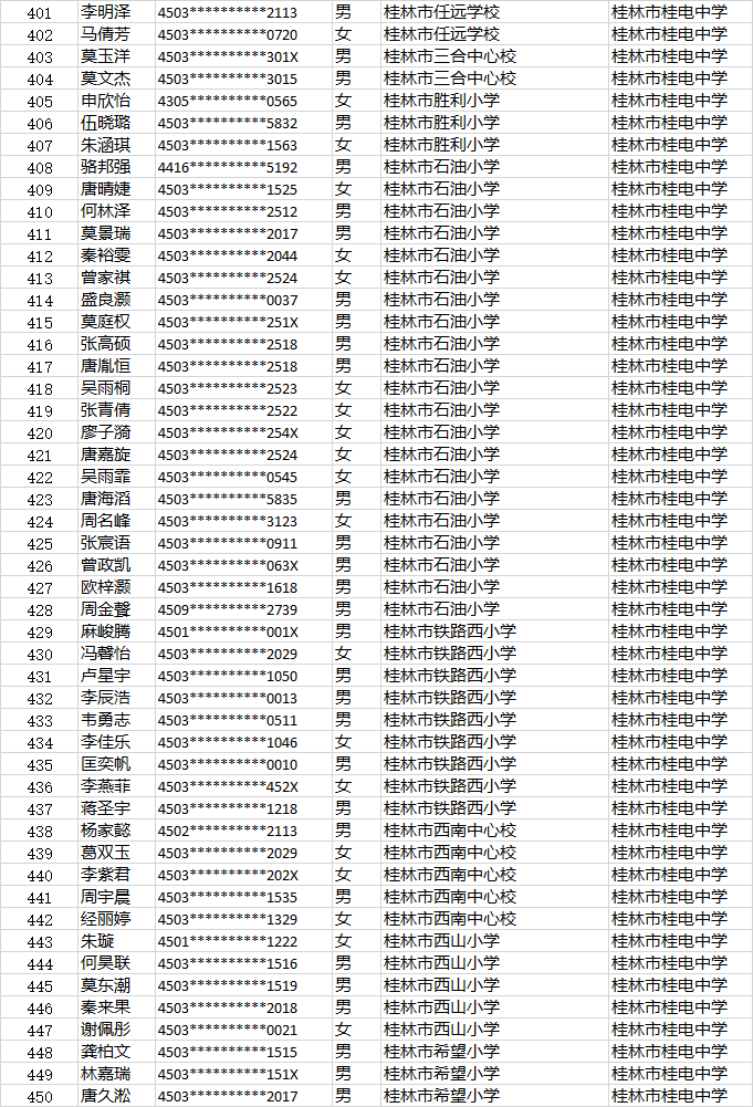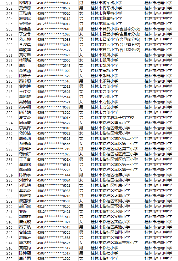 桂电中学小升初第二时段报名名单公示时间:[2022-06-23] 来源:教务处 点击数:274